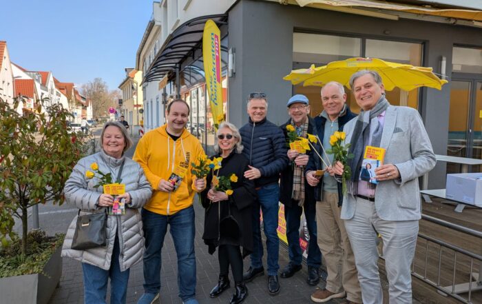 Wahlkampfendspurt – Gelbe-Rosen-Tag der FDP Hechtsheim